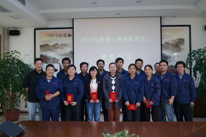 11月4日,江潤銅業2012年第三季度優秀員工表彰大會在一樓會議室召開,總經理駱偉棟主持會議,三季度共評選出17名優秀員工。